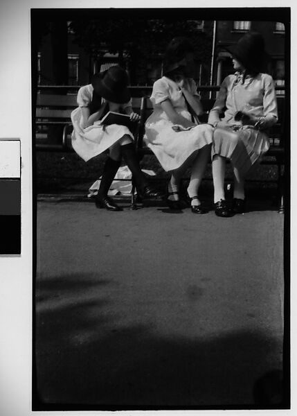 - Title: [Three Women in Bonnets on Bench, New York City]