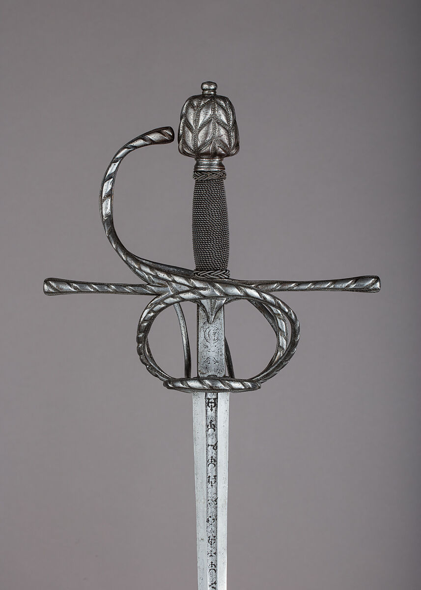 Unless otherwise noted, the materials, attributions, and dating given here refer to the hilts. Rapier blades, invariably of steel, bear a variety of maker’s marks denoting their origin in the two principal centers of blademaking, Toledo in Spain and Solingen in Germany.