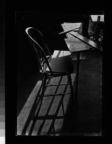- Title: [View of Apartment (Evans'?) Showing Table and Chair and Architect's T-Square in Raking Sunlight, Possibly 48 Columbia Heights, Brooklyn, New York]