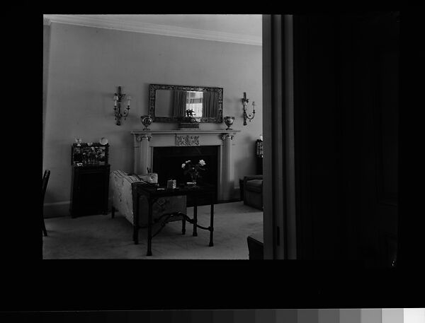 - Title:[Living Room Interior Showing Fireplace, Sofa, and Table]