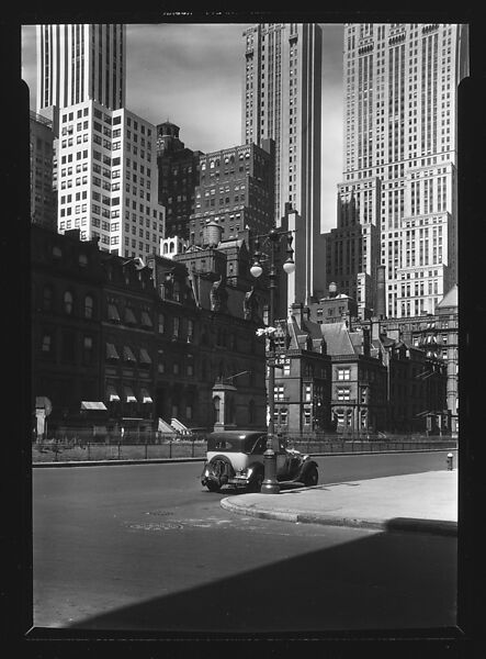 - Title:[Second Empire Town Houses and Skyscrapers with Parked Car in Foreground, New York City]
