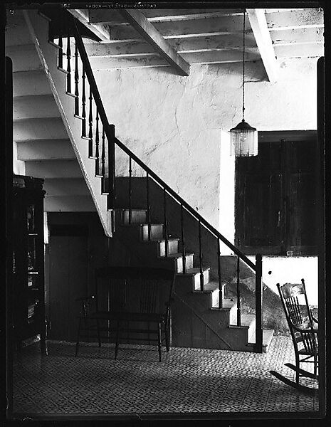 - Title:[Entryway Interior with Stairwell, Rocking Chair, and Bookcase, Possibly Havana]