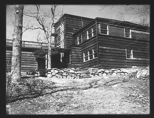 - Title:[Rear View of Modernist House with Brick Patio, Residence of Lyman Paine and Ruth Forbes, Naushon Island, Massachusetts]