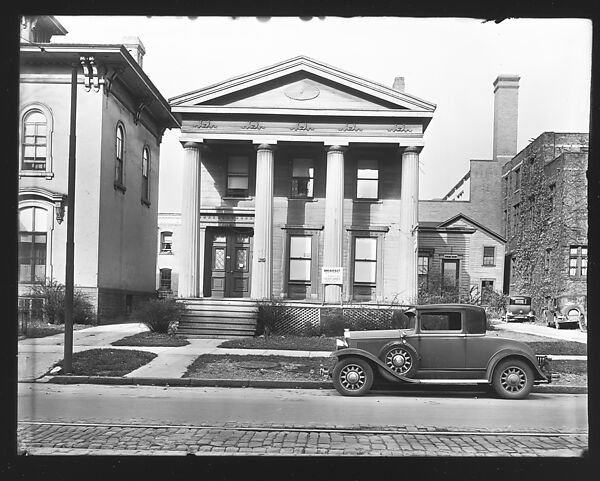 - Title:[Greek Revival House on Street with "Chicken Dinner" and "Garage for Rent" Signs, Syracuse, New York]