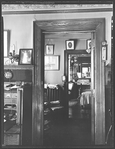 - Title: [Interior Showing Family Photographs Around Doorways and on Fireplace Mantle]