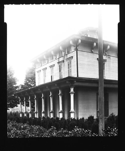 - Title: [Oblique View of House with Full-Façade Porch and Telephone Pole in Foreground (Overexposed)]