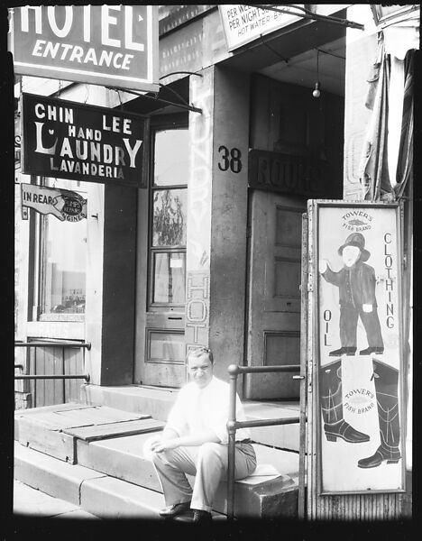 - Title: [Flophouse Entrance on the Bowery with Man Seated on Stoop, New York City]