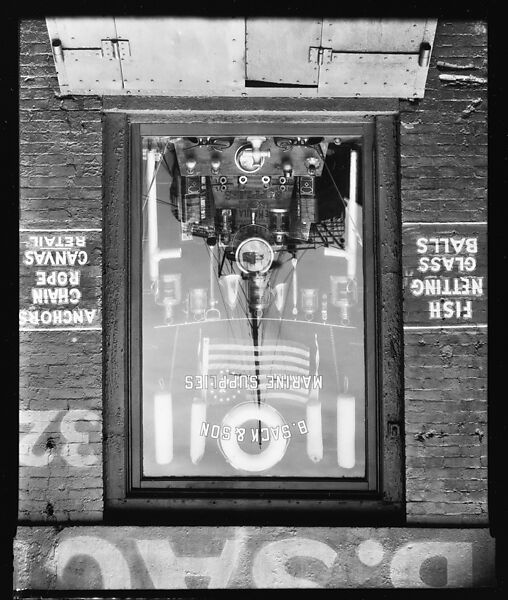 - Title:[Boat Reflection in B. Sack & Son Marine Supply Store Window on Waterfront, New York City]