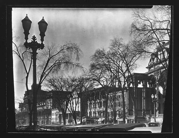 - Title: [Hotels and Parked Cars on Broadway with Street Lamp in Foreground, Saratoga Springs, New York]