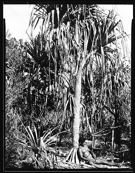 - Title:[South Seas: Man Lying Under Palm Tree Next to Wooden Pen]