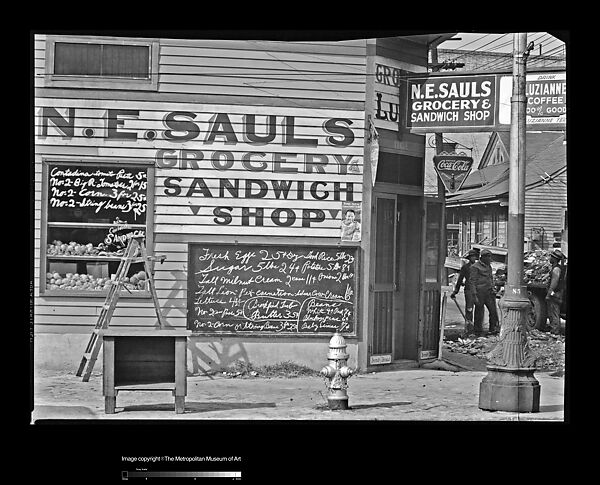 - Title: [Painted Advertisements and Menu Boards on Façade of N.E. Saul's Grocery Store, New Orleans, Louisiana]