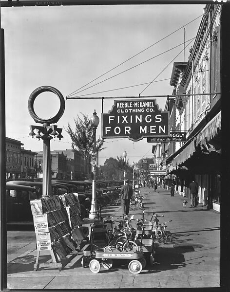 - Title: [Sidewalk Scene with Keeble-McDaniel Clothing Company Sign, Main Street, Selma, Alabama]