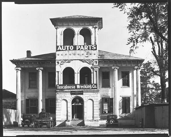 - Title:[Converted Italianate Revival House with Wrecking Company Signs on Tower, Near Tuscaloosa, Alabama]