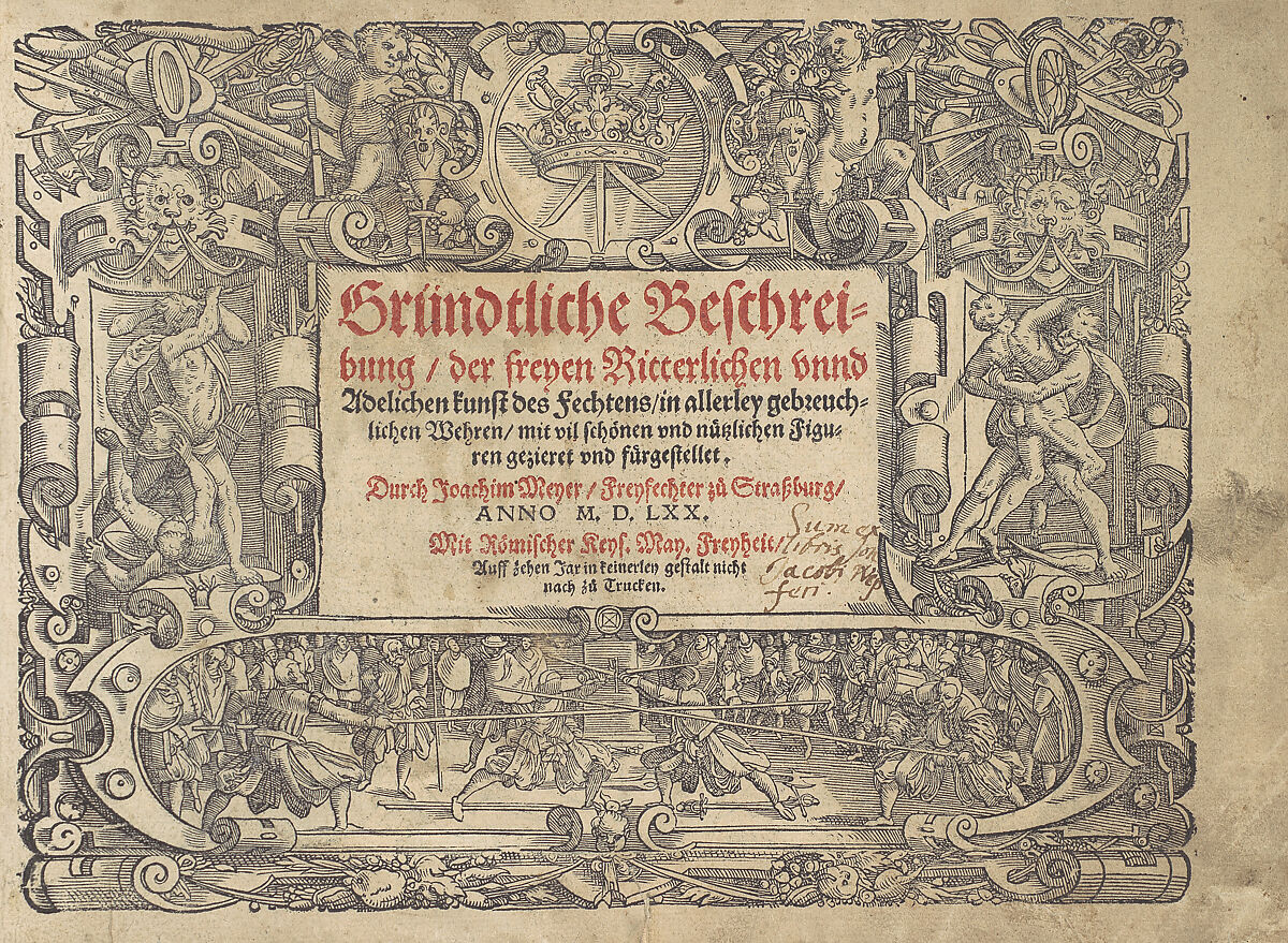 Gründtliche Beschreibung der freyen ritterlichen unnd adelichen Kunst des Fechtens in allerley gebreuchlichen Wehren mit vil schönen und nützlichen Figuren gezieret und fürgestellet (A Thorough Description of the Free Knightly and Noble Art of Fencing, in All the Typical Guards, Adorned and Arranged with Many Beautiful and Useful Figures)