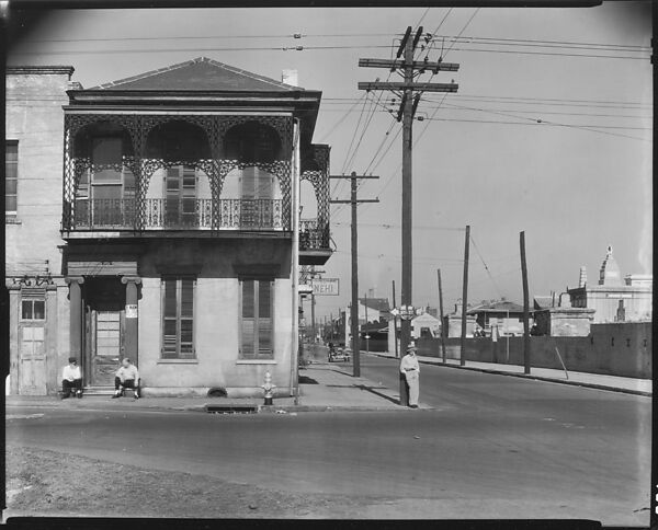 - Title: [Greek Revival Town House on Street Corner with Men Seated in Doorway, New Orleans, Louisiana]