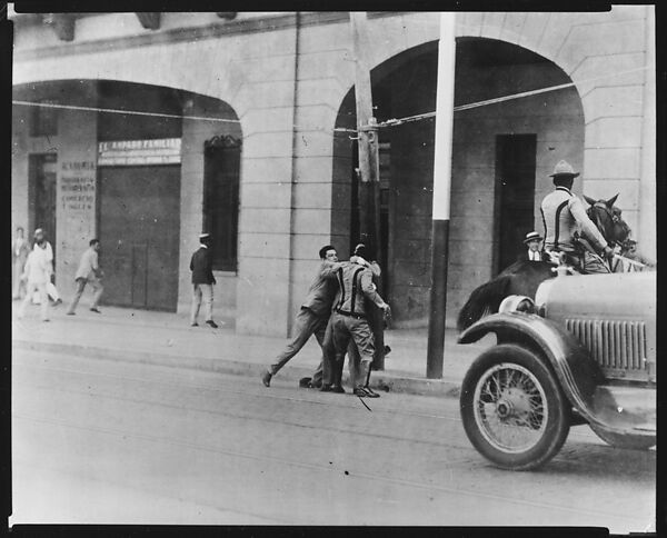 - Title: [Copy of Newspaper File Photograph: Men Fighting on Street Watched by Policeman on Horseback, Havana]
