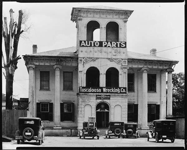 - Title: [Italianate Revival Building with Wrecking Company Signs on Tower, Alabama]
