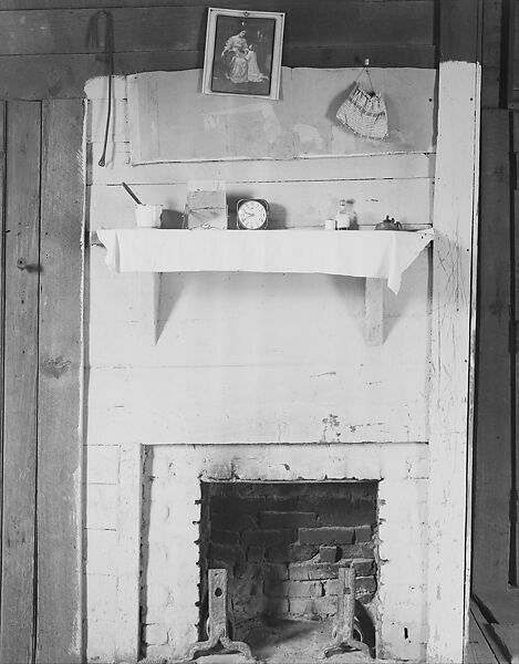 - Title:[Fireplace with Arrangement of Objects on Mantle in Floyd Burroughs' Home, Hale County, Alabama]