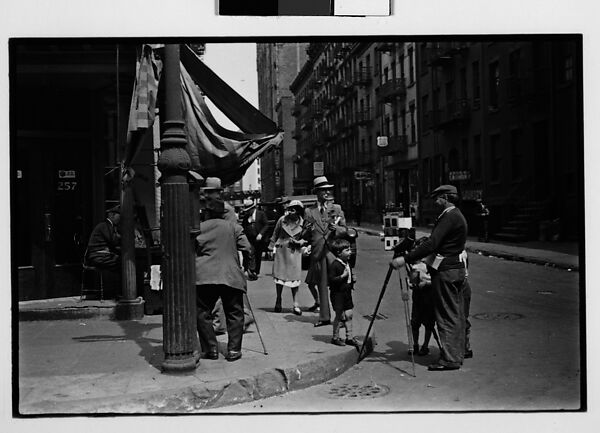 - Title: [Two 35mm Film Frames: Tintype Photographer and Group on Street Corner, New York City]