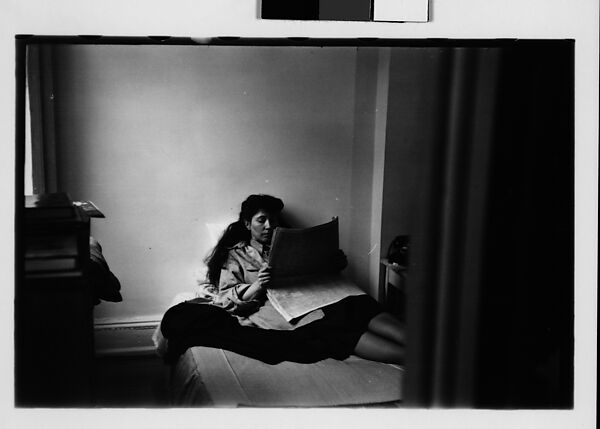 - Title: [Five 35mm Film Frames: Jane Smith Evans Reading Newspaper in Bed, New York City]