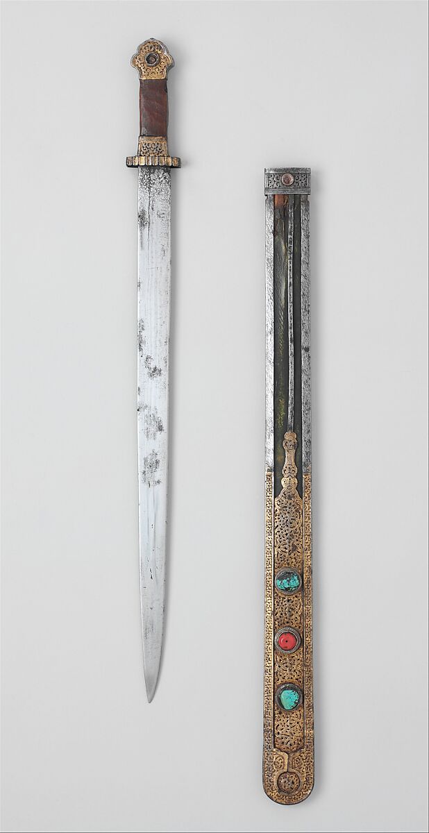 - Medium:Iron, gold, turquoise, coral, leather, wood