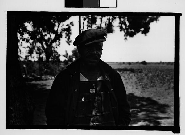 - Title:[Man Wearing Cap and Overalls Standing Next to Tree, Hale County?, Alabama]