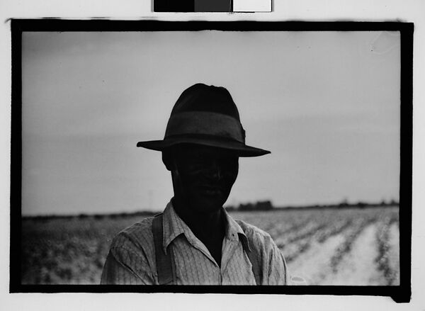 - Title:[Man Wearing Hat and Suspenders with Field in Background, Hale County?, Alabama]