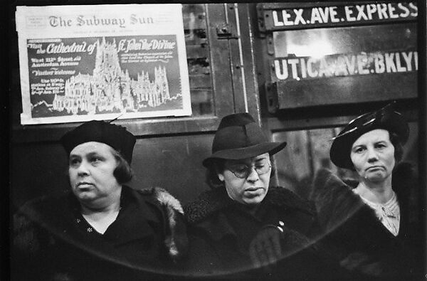 Between 1938 and 1941 Evans produced a remarkable series of portraits in the New York City subways. With a 35mm Contax camera strapped to his chest, its lens peeking out between two buttons of his winter coat, Evans was able to photograph his fellow passengers surreptitiously and at close range. Although the setting was public, he found that his subjects, unposed and lost in their thoughts, displayed a constantly shifting medley of moods and expressions-by turns curious, bored, amused, despondent, dreamy, and dyspeptic. "The guard is down and the mask is off," he remarked. "Even more than in lone bedrooms (where there are mirrors), people's faces are in naked repose down in the subway."