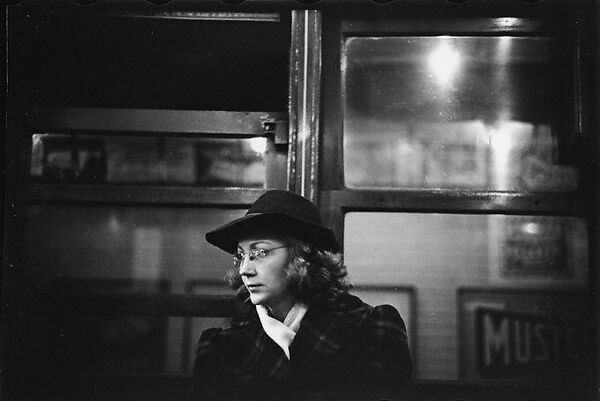 Between 1938 and 1941 Evans produced a remarkable series of portraits in the New York City subways. With a 35mm Contax camera strapped to his chest, its lens peeking out between two buttons of his winter coat, Evans was able to photograph his fellow passengers surreptitiously and at close range. Although the setting was public, he found that his subjects, unposed and lost in their thoughts, displayed a constantly shifting medley of moods and expressions-by turns curious, bored, amused, despondent, dreamy, and dyspeptic. "The guard is down and the mask is off," he remarked. "Even more than in lone bedrooms (where there are mirrors), people's faces are in naked repose down in the subway."