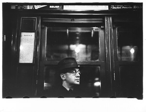 Between 1938 and 1941 Evans produced a remarkable series of portraits in the New York City subways. With a 35mm Contax camera strapped to his chest, its lens peeking out between two buttons of his winter coat, Evans was able to photograph his fellow passengers surreptitiously and at close range. Although the setting was public, he found that his subjects, unposed and lost in their thoughts, displayed a constantly shifting medley of moods and expressions-by turns curious, bored, amused, despondent, dreamy, and dyspeptic. "The guard is down and the mask is off," he remarked. "Even more than in lone bedrooms (where there are mirrors), people's faces are in naked repose down in the subway."