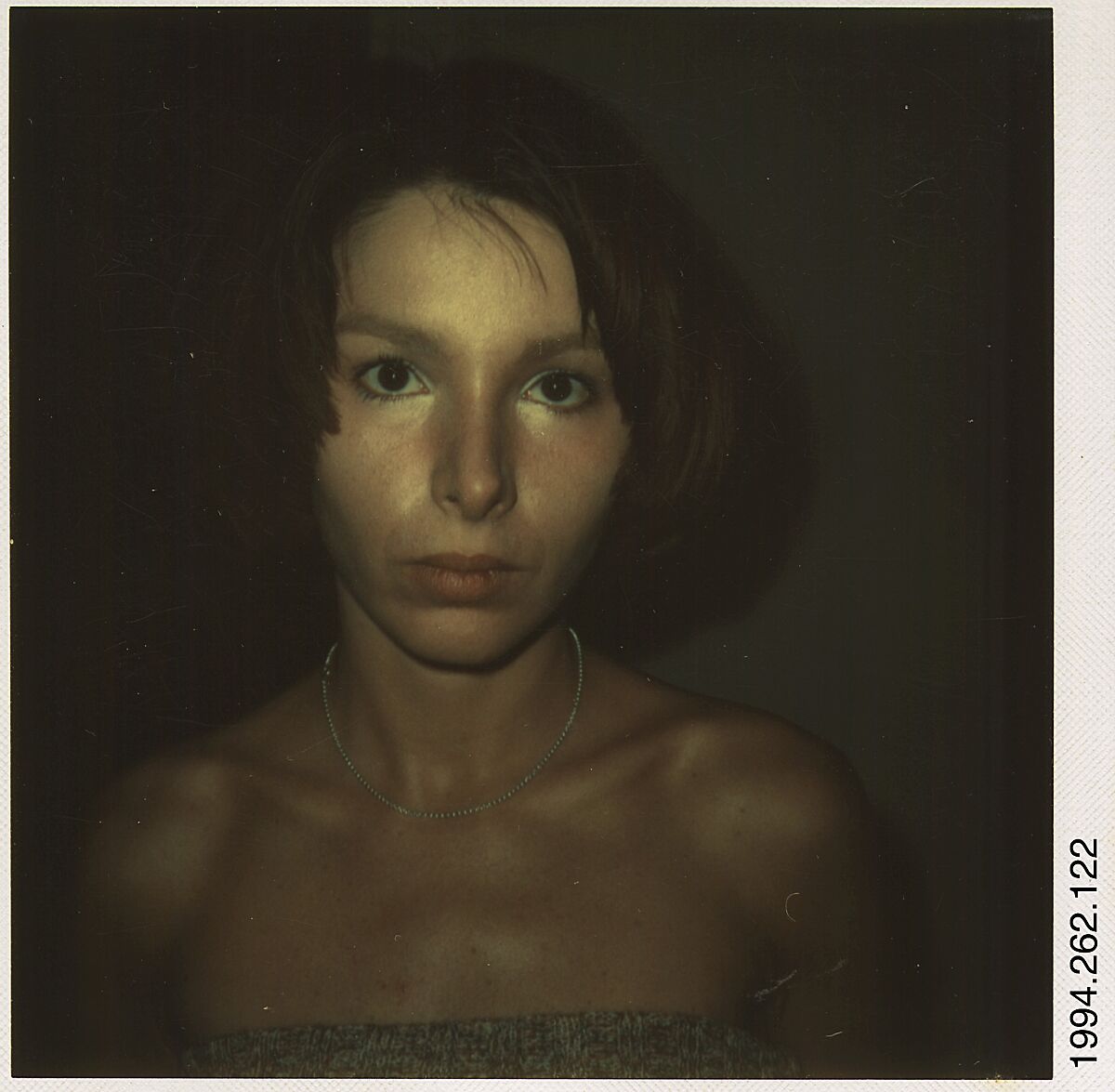 Evans was in poor health when he began to work with the Polaroid SX‑70 in 1973; he was attracted to the camera's small, elegant design and the instant color prints it generated that required no tedious lab or darkroom work. Like the developing Polaroid print itself, with its miraculous and immediate image, Evans came to life and worked feverishly with the new camera. At the age of seventy, he returned to many of his lifelong themes, including vernacular architecture, domestic interiors, and roadside signage. He also expanded his repertoire with a large series of portraits of woman, including neighbors, friends, and his young students at Oberlin College in Ohio where Evans was a guest lecturer in January-March 1974.