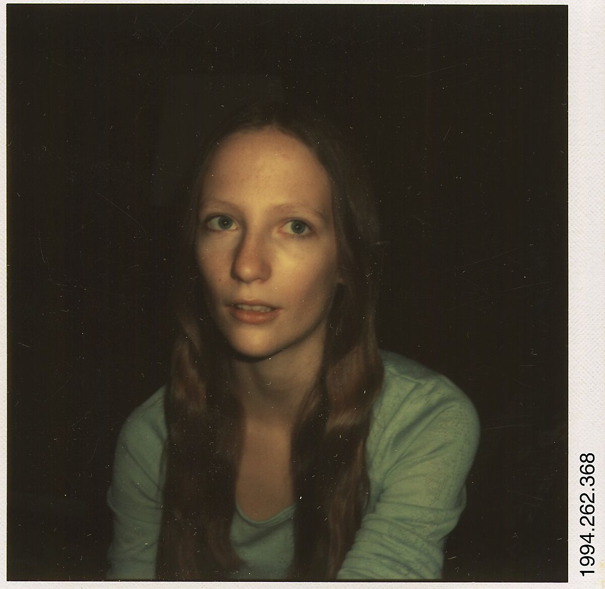 Evans was in poor health when he began to work with the Polaroid SX‑70 in 1973; he was attracted to the camera's small, elegant design and the instant color prints it generated that required no tedious lab or darkroom work. Like the developing Polaroid print itself, with its miraculous and immediate image, Evans came to life and worked feverishly with the new camera. At the age of seventy, he returned to many of his lifelong themes, including vernacular architecture, domestic interiors, and roadside signage. He also expanded his repertoire with a large series of portraits of woman, including neighbors, friends, and his young students at Oberlin College in Ohio where Evans was a guest lecturer in January-March 1974.