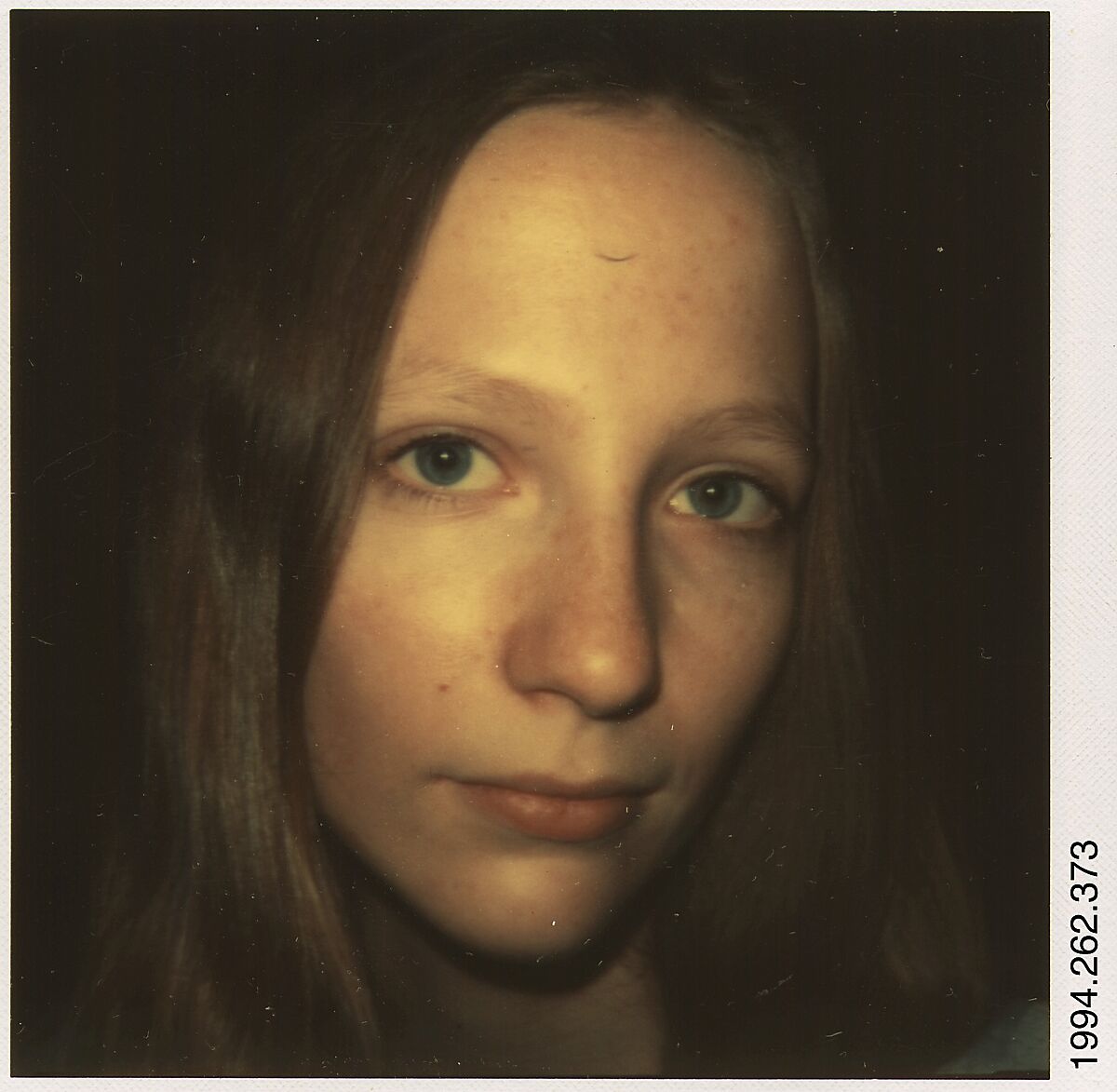 Evans was in poor health when he began to work with the Polaroid SX‑70 in 1973; he was attracted to the camera's small, elegant design and the instant color prints it generated that required no tedious lab or darkroom work. Like the developing Polaroid print itself, with its miraculous and immediate image, Evans came to life and worked feverishly with the new camera. At the age of seventy, he returned to many of his lifelong themes, including vernacular architecture, domestic interiors, and roadside signage. He also expanded his repertoire with a large series of portraits of woman, including neighbors, friends, and his young students at Oberlin College in Ohio where Evans was a guest lecturer in January-March 1974.
