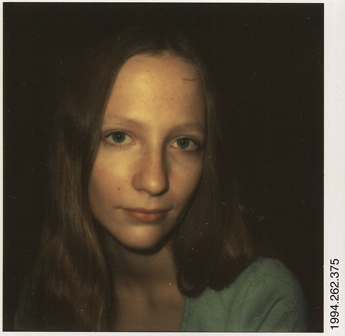 Evans was in poor health when he began to work with the Polaroid SX‑70 in 1973; he was attracted to the camera's small, elegant design and the instant color prints it generated that required no tedious lab or darkroom work. Like the developing Polaroid print itself, with its miraculous and immediate image, Evans came to life and worked feverishly with the new camera. At the age of seventy, he returned to many of his lifelong themes, including vernacular architecture, domestic interiors, and roadside signage. He also expanded his repertoire with a large series of portraits of woman, including neighbors, friends, and his young students at Oberlin College in Ohio where Evans was a guest lecturer in January-March 1974.
