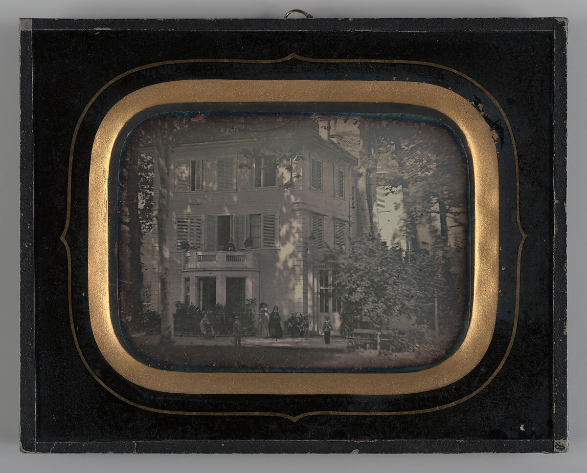 Many daguerreotypists recorded places and events that had personal meaning now lost to history. Such is the case here. Like many daguerreotypes, it no doubt passed through generations of a family before finding its way, perhaps through the hands of a flea-market "picker," to a London auction in 1975, where it was purchased by William Rubel. Lost along the way was the knowledge of just who the women on the balcony and in the garden were, and who the two young boys were, posing before the camera with their long wooden sticks for hornussen, a ball game played in northern Switzerland. All that remains is the art: light filtering through the trees on a charming scene of mid-nineteenth-century life.