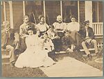 [Group of Eleven Men, Women, and Children, Including Jessie Crane Evans, Theodore H. Crane, Bricena Chadwick Crane, Judith H. Crane, Verner W. Crane, Ronald S. Crane, Ralph Crane, and Robert Crane, Seated on Porch, Gratiot Beach, Michigan]