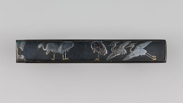 - Medium: Copper-gold alloy (shakudō), gold, silver