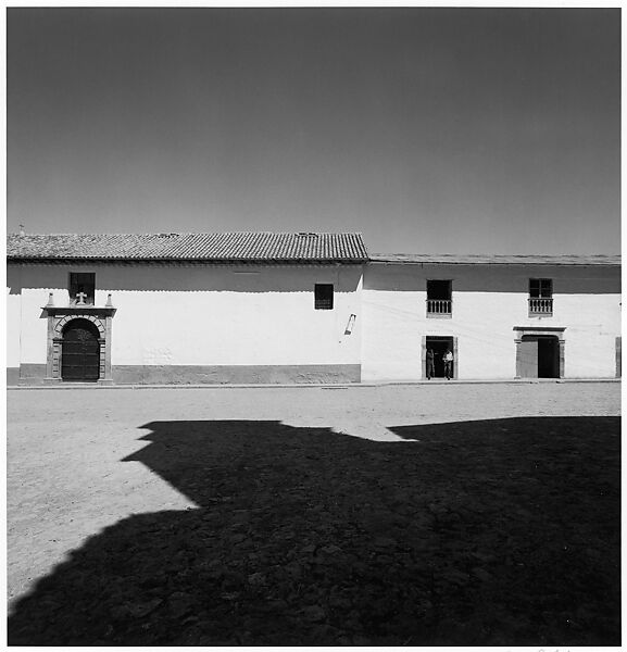 - Title: [Shadowed Plaza with Men in Doorway of Stone Building, Possibly Peru]