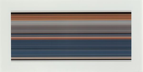 Friedman is known for his ingenious transformations of everyday materials, such as toothpicks, pasta, and chewing gum, into sculpture. In one now-classic work, he carved his self-portrait in an aspirin, poking fun at, yet nevertheless honoring, the traditions of marble carving and miniature portraiture. In this photograph, he depicts himself as a human barcode by taking a thin vertical slice from a full-length photographic self-portrait then stretching it horizontally with the aid of a computer to create a virtually abstract image composed of bands of color.