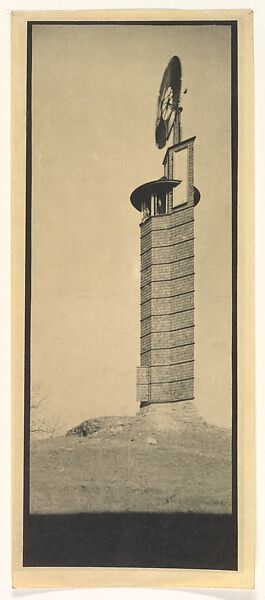 Photographing from an oblique angle, Frank Lloyd Wright renders this windmill almost unrecognizable. Such funhouse distortion would become a favorite trick of modernist photographers, but more peculiar is the architect who willfully contorts his own design. After Wright built this structure in Wisconsin in 1897, a camera allowed him to keep tweaking its appearance in apparent pursuit of an oft-stated goal: "the elimination of the insignificant." Conceived in harmony with his earlier Hillside Home School project, built for his aunts, the windmill fuses two columnar forms: a short octagon and a taller, thinner rhombus, evocative to some of Romeo and Juliet joined in an embrace. Leveling these forms into flat planes, Wright’s sidelong view shaves the structure to its essential silhouette.