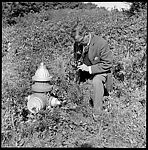 [4 Portraits of Walker Evans Photographing Fire Hydrant and Trash Can]
