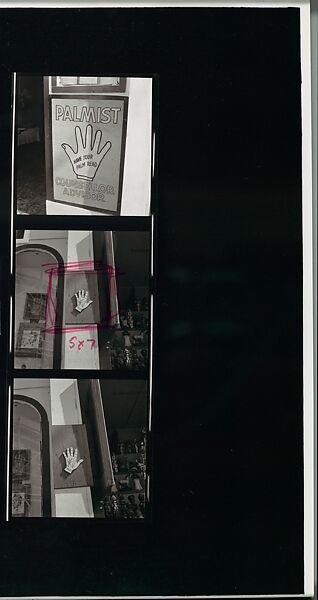 - Title: [Original Annotated Negative Sleeve and Contact Sheet of Palmist Sign, Venice, California]