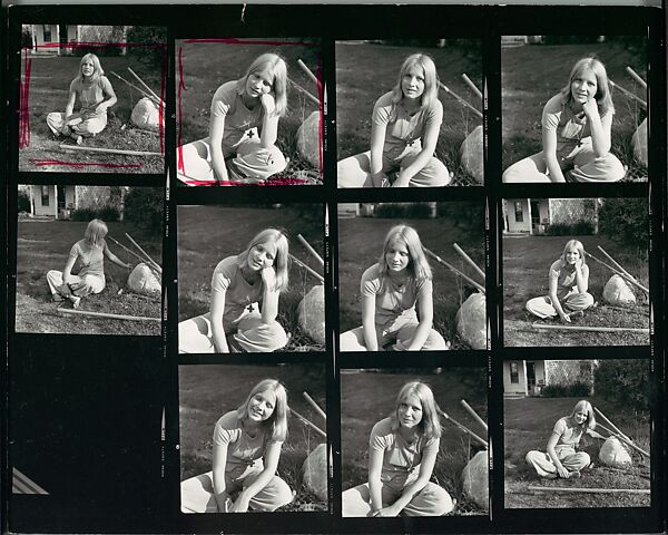 - Title: [3 Original Annotated Contact Sheets of Young Woman Seated on Lawn and in Car]
