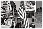 These photographers engaged the traditions of American documentary photography to reveal chance encounters, unexpected relationships, and idiosyncrasies of everyday life. This witty composition transforms a city street into an accumulation of form and detail held in careful balance. The movie titles on the theater marquee provide a wry internal caption for this study in juxtaposition.