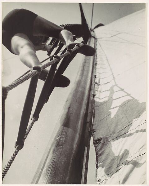 This exciting and unexpected view up the rigging of a sailboat, made on the Spree River near Berlin, is a prime example of Moholy's "new vision." Armed with a small hand-held camera and a free-wheeling spirit, Moholy made "bird's-eye" and "worm's-eye" views that transformed the pictorial conventions of perspective and posited a new way of experiencing and representing the world. His disorienting, topsy-turvy viewpoints viscerally communicated the dynamism of the modern world and paralleled the social revolutions of the Weimar Republic.