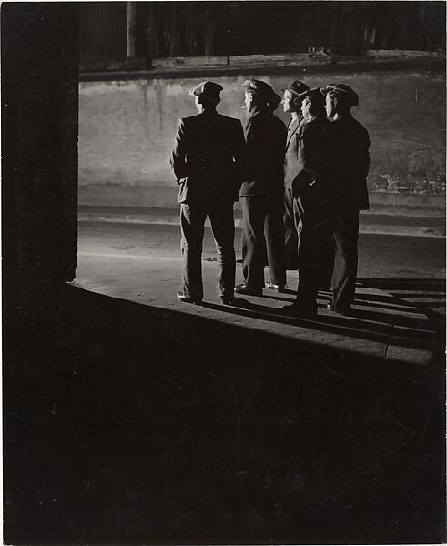 Brassaï exaggerated the menacing sense of darkness in this picture by printing the bottom third of the paper black, extending the picture beyond the edge of the negative.