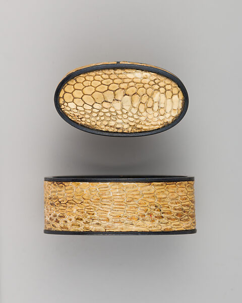 - Medium: Copper-gold alloy (shakudō), snake skin, gold