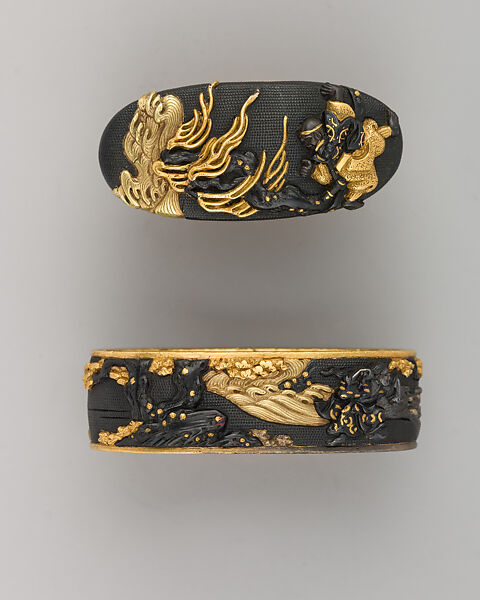 - Dimensions: Fuchi (a); H. 1 1/2 in. (3.8 cm); Wt. 0.8 oz. (22.7 g); kashira (b); H. 1 3/8 in. (3.5 cm); Wt. 0.5 oz. (14.2 g)