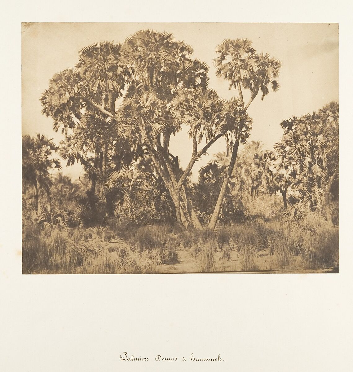 Maxime Du Camp's mission to Egypt and the Near East in 1849-51 to make a photographic survey of monuments and sites is well documented in his writings and in those of his fellow traveler, Gustave Flaubert. After an initial stay in Cairo, the two friends hired a boat to take them up the Nile as far as the second cataract, after which they descended the river at leisure, exploring the archaeological sites along its banks. In July 1850 they left Egypt for Palestine, Turkey, and Greece before they parted in Italy the following April. Du Camp's album "Egypte, Nubie, Palestine et Syrie," published in 1852 and containing 125 photographs printed by Blanquart-Evrard, brought its author instant fame. In addition to the published edition, Du Camp arranged for a private printing of a few portfolios, such as the one in the Gilman collection, which numbers 174 images particularly noteworthy for their warm color and luminescence. Possibly printed in Gustave Le Gray's studio, the present portfolio is