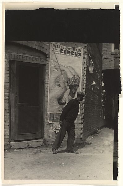 - Title: [Man in Front of Doorway of Liberty Cafe, with Walter L. Main Circus Poster on Wall]